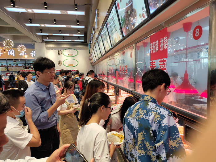 走访中发现,六个学生食堂通过横幅、标牌、桁架、滚动字幕等标语,向全体师生发出“厉行节约,反对浪费”的倡议,营造了拒绝浪费、创建节约型校园的氛围。食堂环境卫生整洁,菜肴品种较为丰富,均设置了半份菜和免费汤。虽然就餐人数很多,但同学们能够有序排队购买。校领导与部分就餐的学生进行了交谈,同学们表示对学校伙食总体较为满意,但希望部分菜价能够再优惠一点。走访中,校领导对少数还不能自觉做到光盘的同学进行了教育提醒。校领导要求后勤部门和食堂要进一步加强宣传,营造“浪费可耻,节约光荣”的浓厚氛围,同时要根据学生需求提高免费汤质量,确保中餐也能保证供应馒头、包子等面食。团学部门要进一步加强教育引导,充分发挥学生志愿者的作用,带动全体学生厉行节约、反对浪费。