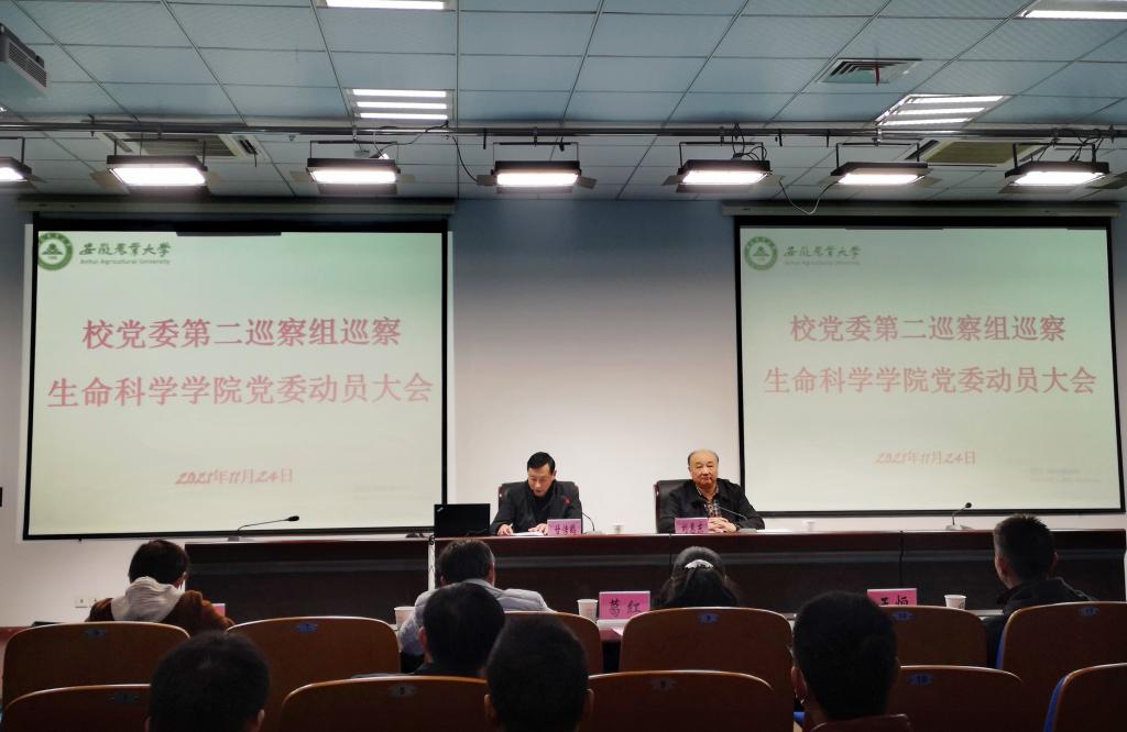 本网讯 根据校七届党委第三轮巡察工作方案,11月24日,校党委第一巡察组进驻植物保护学院党委,第二巡察组进驻生命科学学院党委。各巡察组分别在被巡察单位召开了巡察工作动员会,组长朱绍友、刘惠东分别作动员讲话,被巡察单位主要负责同志主持会议并作表态发言。两个巡察组成员、被巡察单位全体教职工分别参会。