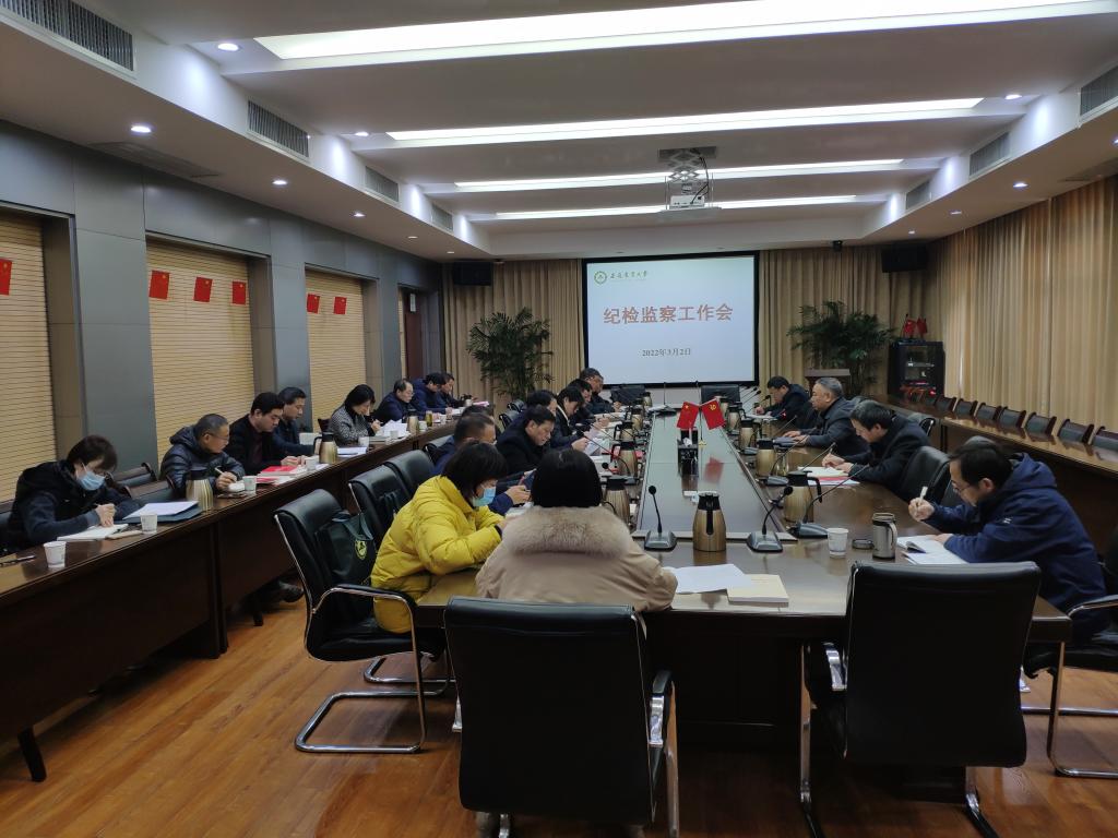 陈文兵指出,十九届中央纪委六次全会和省纪委十一届二次全会精神具有很强的政治性、思想性、针对性,对于运用党的百年奋斗历史经验,永葆自我革命精神,推进全面从严治党、党风廉政建设和反腐败斗争向纵深发展指明了方向,为学校纪检监察工作提供了根本遵循。《中国共产党纪律检查委员会工作条例》对党的纪律检查委员会工作作出全面规范,对于坚持和加强党的全面领导,深入推进纪检监察工作规范化、法治化、正规化以及高质量发展,充分发挥监督保障执行、促进完善发展作用具有重要意义。学习贯彻《条例》是各级纪检监察部门的本职要求,掌握运用《条例》是纪检监察干部的看家本领和基本功。全省改进工作作风为民办实事为企优环境大会精神,宣示了省委刀刃向内、自我革命的坚定态度,为我们树立了忠诚尽职、奋勇争先的鲜明导向。全校纪检监察巡察干部要把学习贯彻中央纪委、省纪委全会精神和《条例》、加强作风建设作为当前重要政治任务,衷心拥护“两个确立”,忠诚践行“两个维护”,以强有力的政治监督确保中央、省委决策部署和校党委重要决定贯彻落实到位;要不断巩固拓展党史学习教育成果,汲取“十年磨一剑”的精神力量,筑牢理想信念根基,守住拒腐防变防线,发扬担当斗争精神,大力弘扬传统文化、红色文化、廉洁文化;要切实加强作风建设,认真对照省委书记郑栅洁同志指出的不作为、不担当、不进取、不务实、不守信、不知止的“六个不”突出表现,举一反三,查找不足,坚决纠治“四风”,持之以恒“改作风、办实事、办大事”,持续加固中央八项规定堤坝。