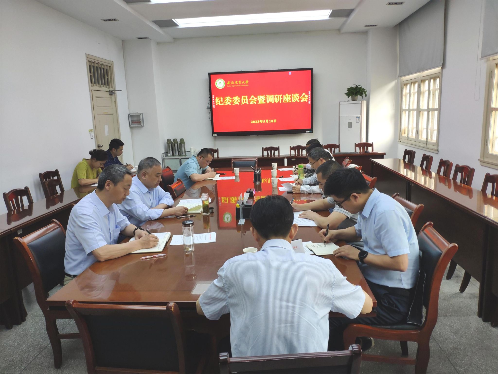会议围绕二级纪委作用发挥、“用身边事教育身边人”有效途径、贯通协调监督体系、重点领域和关键环节日常监督、信访工作提质增效、纪检监察干部职业能力提升等调研内容进行了座谈交流。会议要求,要将主题教育与教育整顿紧密结合起来,深入推进调查研究和检视整改,坚持问题导向、目标导向、结果导向,针对问题找准点、把好脉、制好方,推进学校纪检监察工作高质量发展。