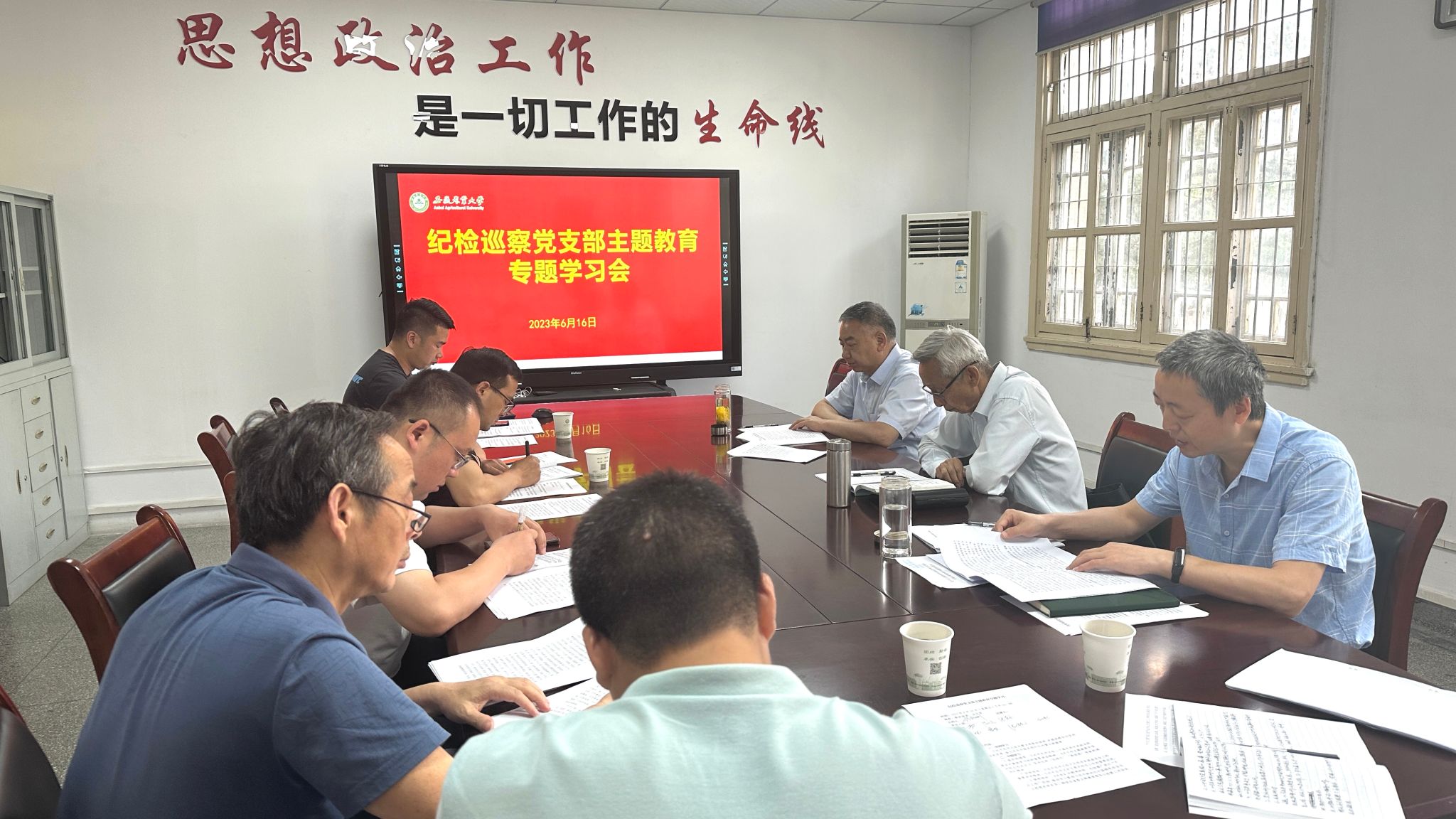 会议集中学习了习近平总书记在内蒙古考察时、在文化传承发展座谈会上的重要讲话精神,学习了习近平总书记关于意识形态工作的重要论述;学习传达了中央主题教育办印发的有关通知精神;围绕浙江“千村示范、万村整治”工程经验案例展开学习研讨;通报了《教育部公开曝光第十二批7起违反教师职业行为十项准则典型案例》,学习了全国模范教师、“最美安农人”李桂亭先进事迹,进一步加强师德师风建设,强化纪检监察干部队伍建设。