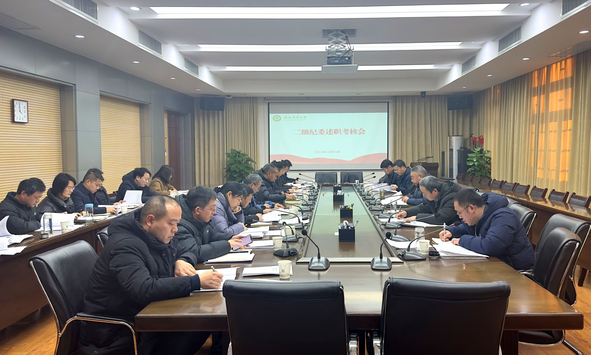 会议结合现场述职、书面述职材料,对二级纪委工作进行现场测评,并对2023年度优秀工作案例征集、学期末相关监督工作作了安排和提醒。