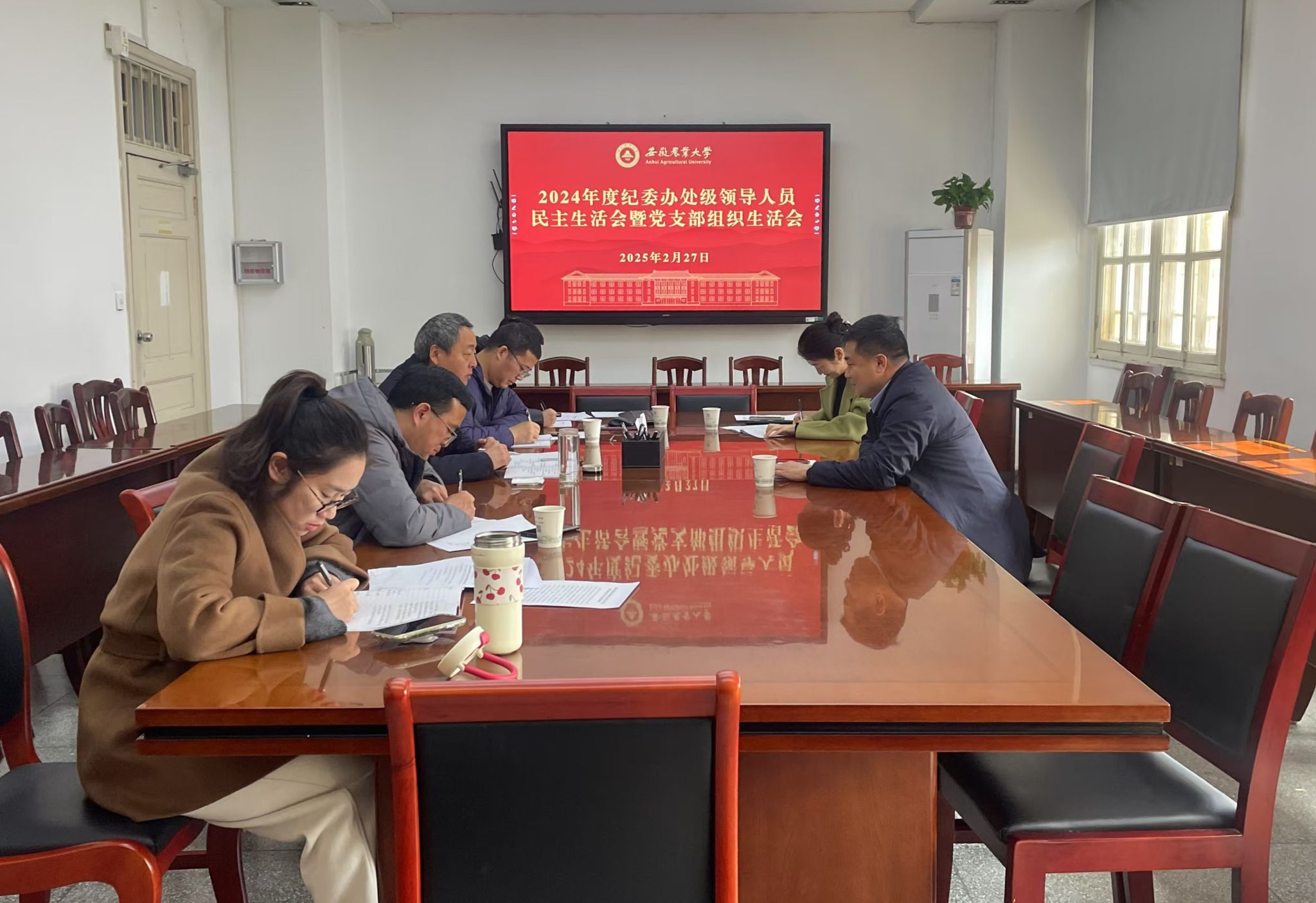 本网讯 2月27日上午,纪委办2024年度处级领导干部民主生活会暨党支部组织生活会召开。机关党委委员、党政办主任戴照力,党政办机要科科长郑青到会指导。党支部书记彭庆刚主持会议。