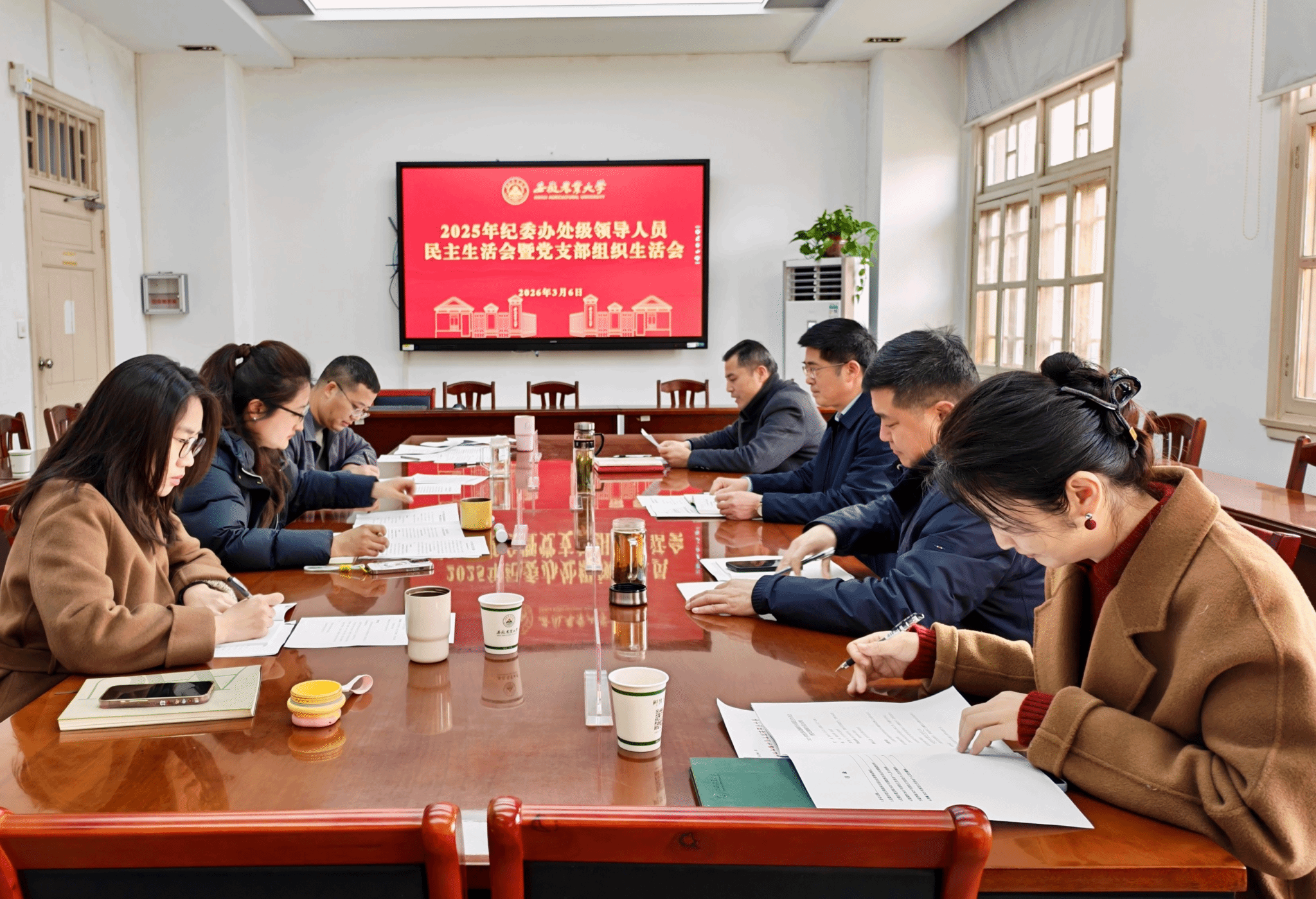 本网讯 3月6日上午,纪委办召开2025年度党员处级领导干部民主生活会暨党支部组织生活会,机关党委委员、党政办主任戴照力到会指导。校党委常委、纪委书记、监察专员程道传以普通党员身份参会议,他强调要深入学习贯彻党的二十届四中全会精神,二十届中央纪委五次全会和省纪委十一届六次全会精神,严格按照习近平总书记关于持续加强纪检监察工作规范化法治化正规化和纪检监察队伍“四个过硬”的重要要求,纵深推进全面从严治党,为学校实现“十五五”时期目标任务提供坚强纪律保障。