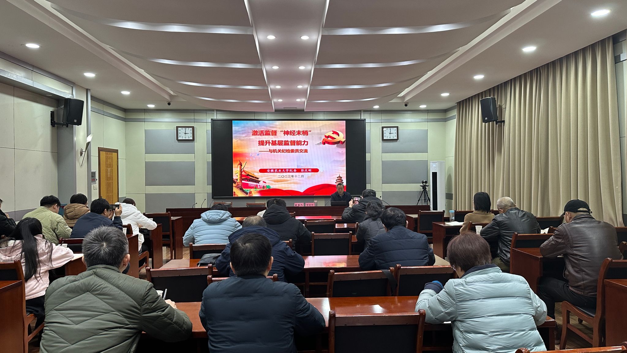 彭庆刚首先带领大家学习了12月8日中央政治局会议精神。他指出,基层纪检干部和党支部纪检委员居于基层监督的“最后一公里”,是日常监督的最“前哨”,是全面从严治党监督体系中的“神经末梢”。基层纪检干部和党支部纪检委员要找准坐标定位,明确身份、了解职责、认清价值,做党规党纪的忠实崇尚者;要深化理论武装,固根本、讲政治、强基础,做立场坚定的政治清醒者;要牢记职责使命,严监督、敢亮剑、抓重点,做纪律规矩的模范守护者;要注重清廉自守,坚持慎始慎初、慎独慎微、慎交慎处,做新风正气的积极践行者,努力把自己锻造成为忠诚干净担当、敢于善于斗争的“纪律卫士”,为特色高水平农业大学建设提供坚强保障。