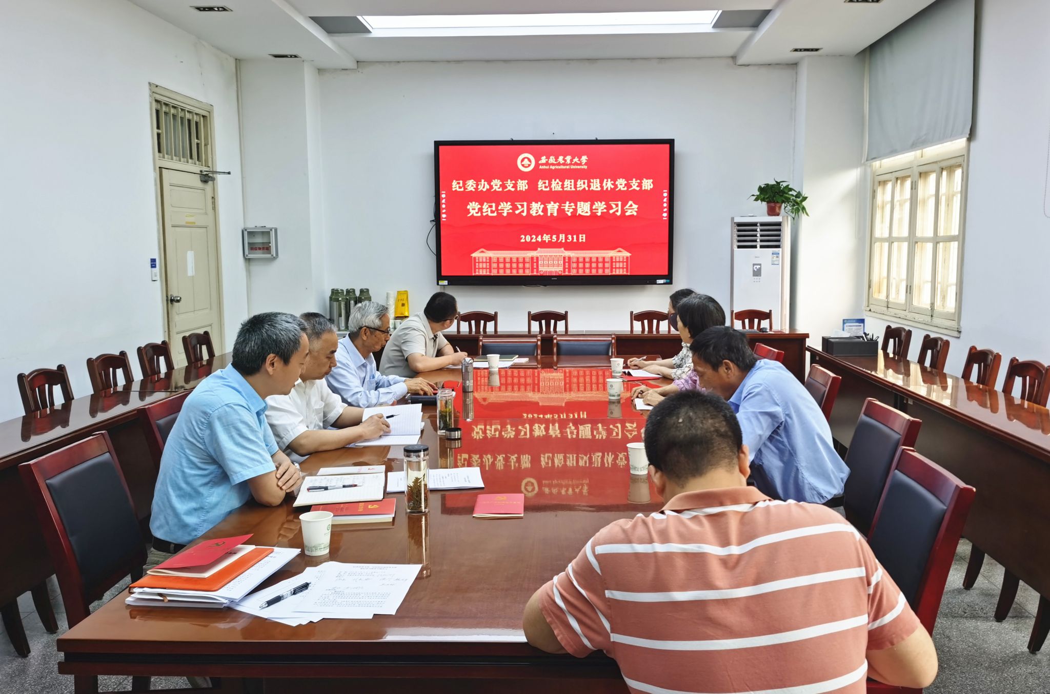 本网讯 为扎实推进党纪学习教育,5月31日下午,纪委办党支部和纪检组织退休党支部联合开展专题学习。校党委常委、纪委书记、监察专员陈文兵以普通党员身份参加专题学习会,校纪委原书记刘长安等4名退休支部党员、纪委办党支部在校党员参加学习。专题学习会由纪委办党支部书记彭庆刚主持。