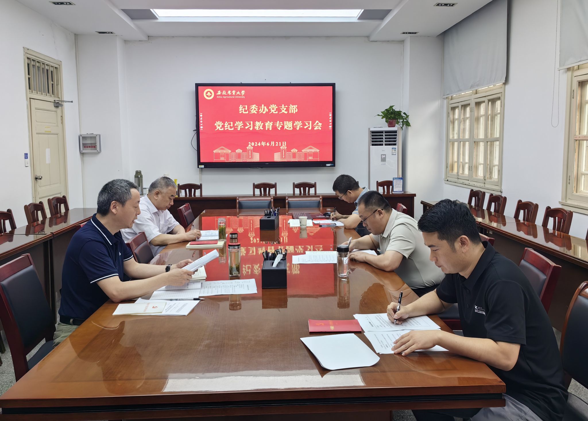 会议集中学习了习近平总书记在主持召开中央全面深化改革委员会第五次会议时的重要讲话精神,关于意识形态和思想政治工作的重要讲话重要指示批示以及《习近平关于全面加强党的纪律建设论述摘编》部分篇章。原原本本学习了《中国共产党纪律处分条例》第二编分则第八章至第十一章和第三编附则。观看了2024年高校党组织示范微党课第一期《中华传统廉洁文化》首播和中央纪委国家监委网站教育片《党史中的纪律》第四集、第五集内容。2名同志交流了党纪学习心得。